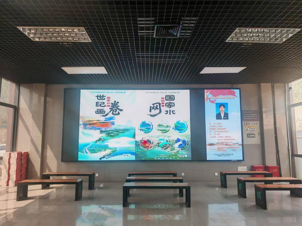(景区游客中心、景区主干道等游客密集区,通过高清电子大屏循环播放“国家水网 世纪画卷”主题宣传海报)