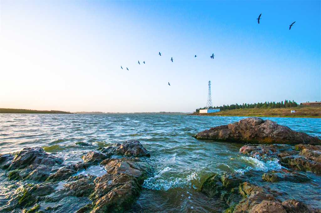 涧山口水库的水质清澈透明,波光粼粼,水面视野开阔,动中有静,静中有动,有深水区,也有浅水湾,水中有野生鱼群悠哉游哉,水面有水鸟珊珊飞舞,每到清晨或黄昏,水面上轻烟漫起如诗如画;风景区周边有广袤的丘陵、湿地及农田,丘陵连绵,风光绚丽,高低错落,远近有致,使风景区成为鸟语花香、荡舟戏水、垂钓观鱼、登高放歌的人间仙境。
